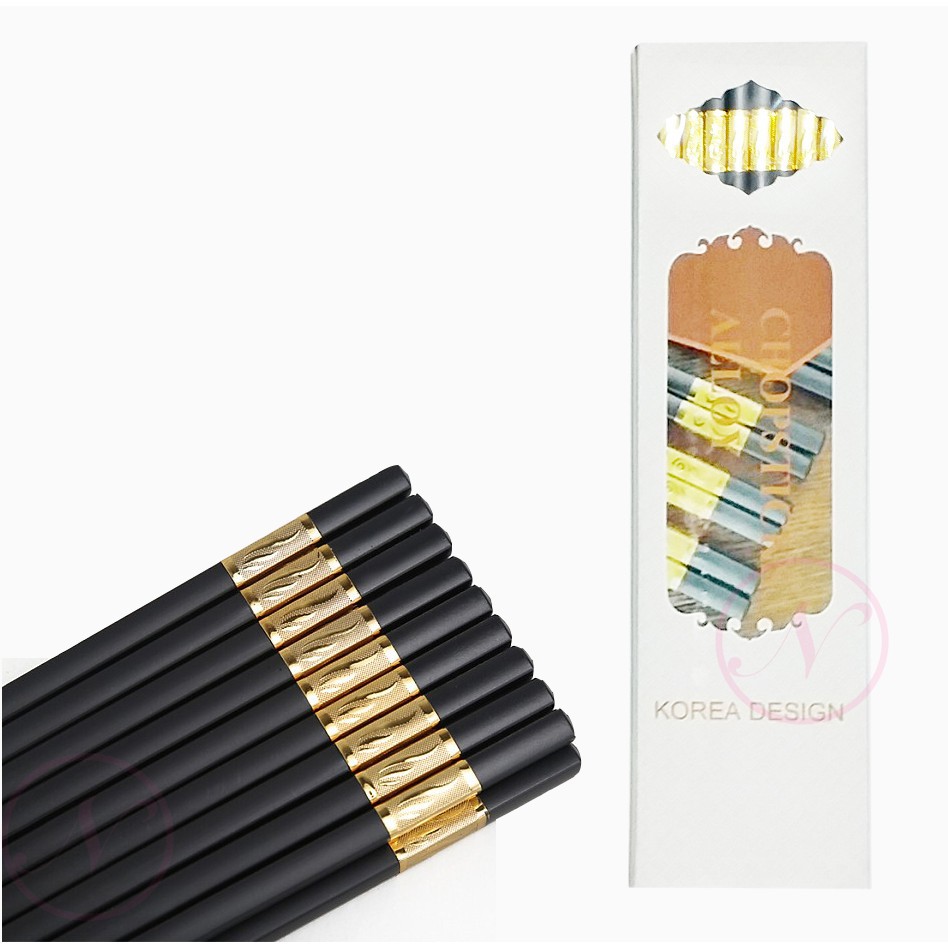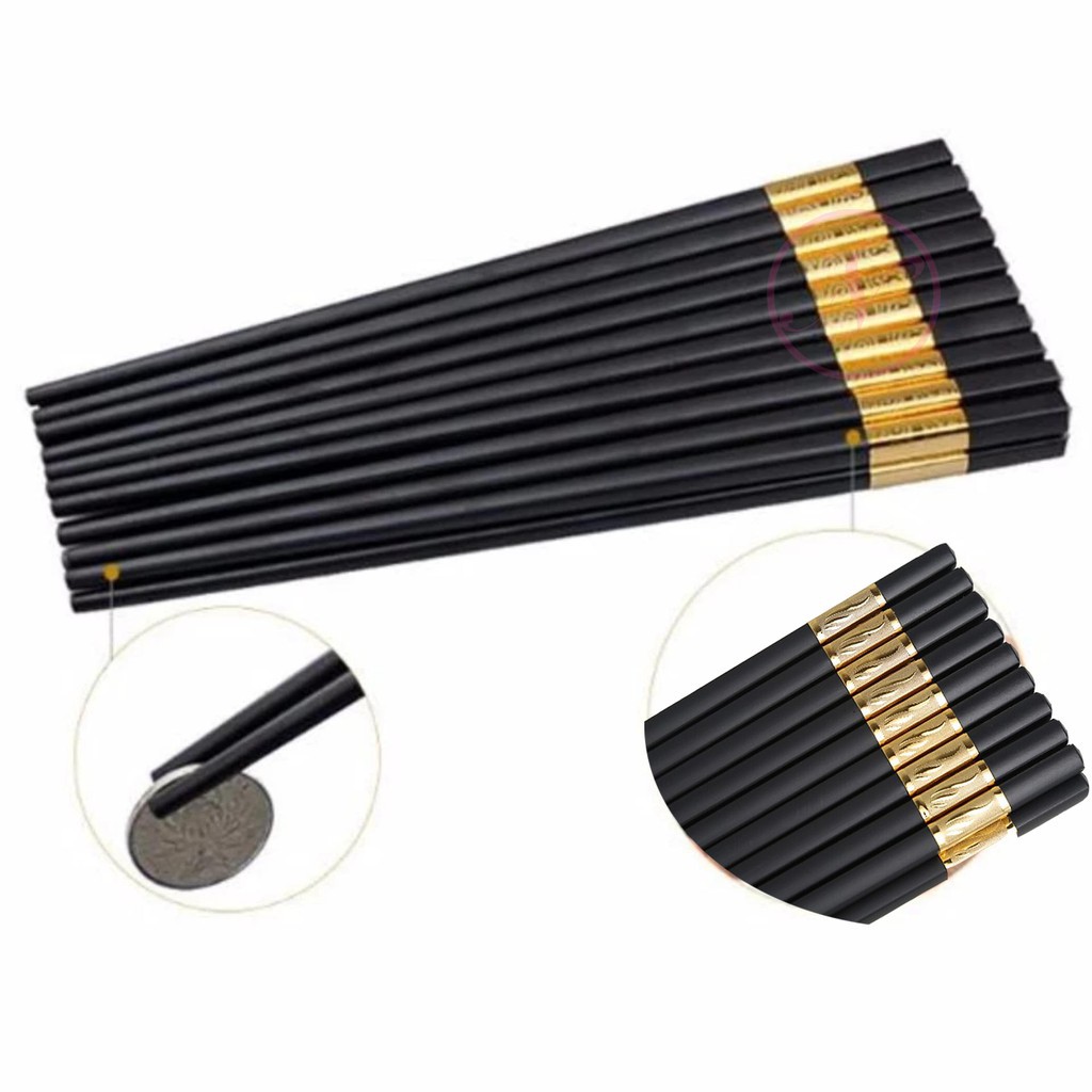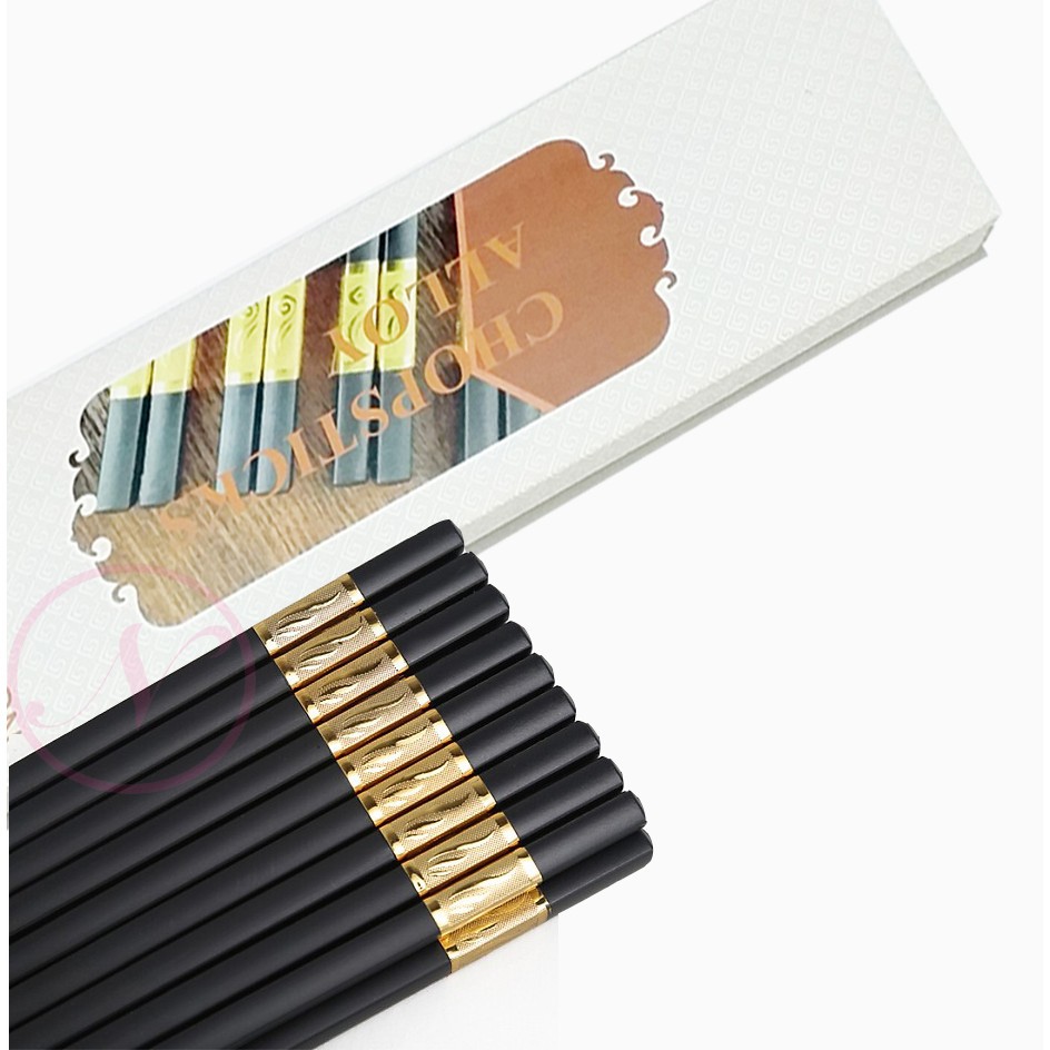 Bộ 10 đôi đũa hợp kim đầu bọc vàng cao cấp - không mốc - đầu gấp nhám bám cực tốt