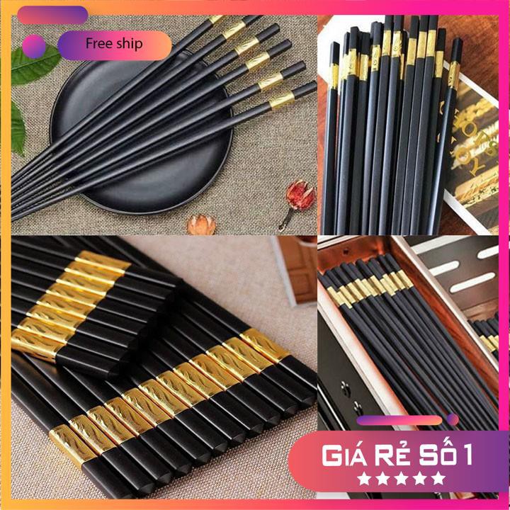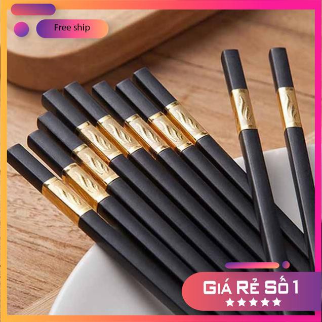 Bộ 10 Đôi Đũa Hợp Kim Mạ Vàng Hàn Quốc An Toàn Không Độc Hại