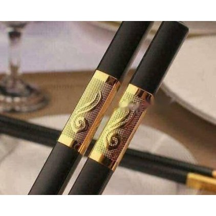 - 🌺Đũa dài tiêu chuẩn 27cm. Màu đen, mạ vàng, mạ bạc phía cuối, chống thấm mốc siêu bền.