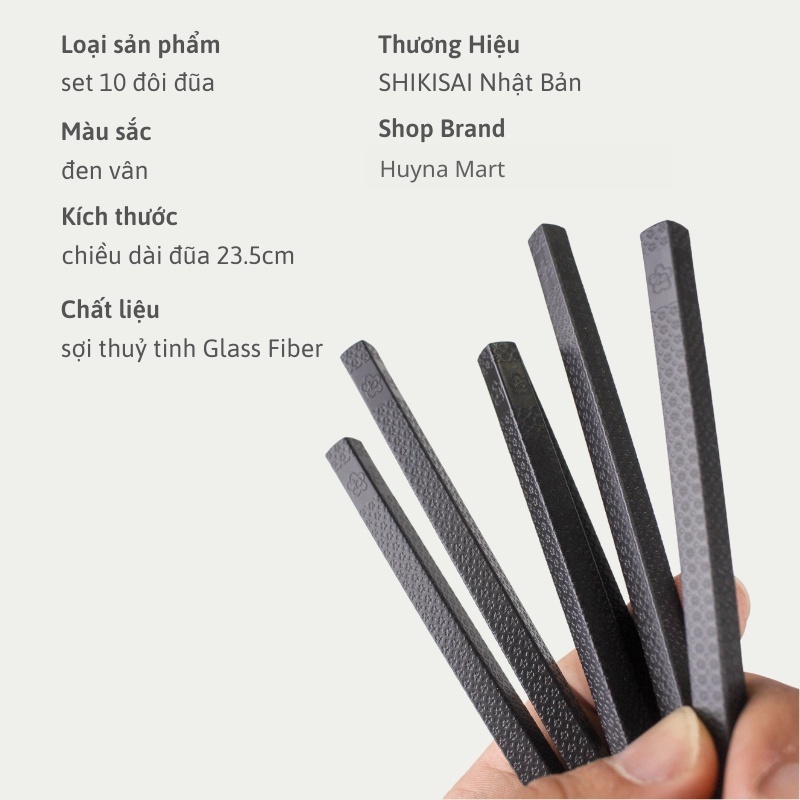 Giới thiệu Bộ 10 đôi đũa kháng khuẩn nhật Shikisai cao cấp chống ẩm mốc chịu nhiệt Huyna mart NB54