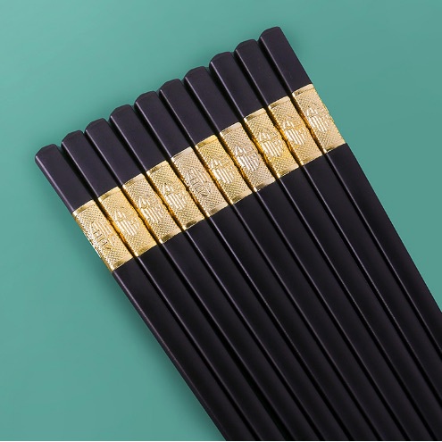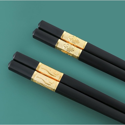 Bộ 10 đôi Đũa mạ vàng, Đũa ăn cao cấp đũa khảm vàng hàn quốc Chống Trơn- Chống Trượt- Chống Mốc- Bền Mầu