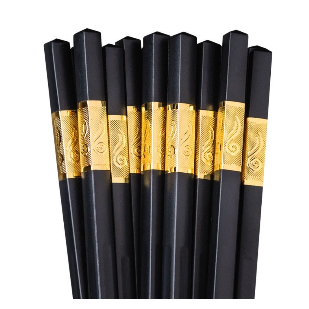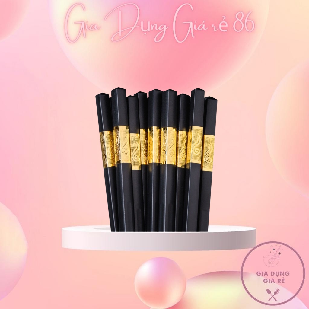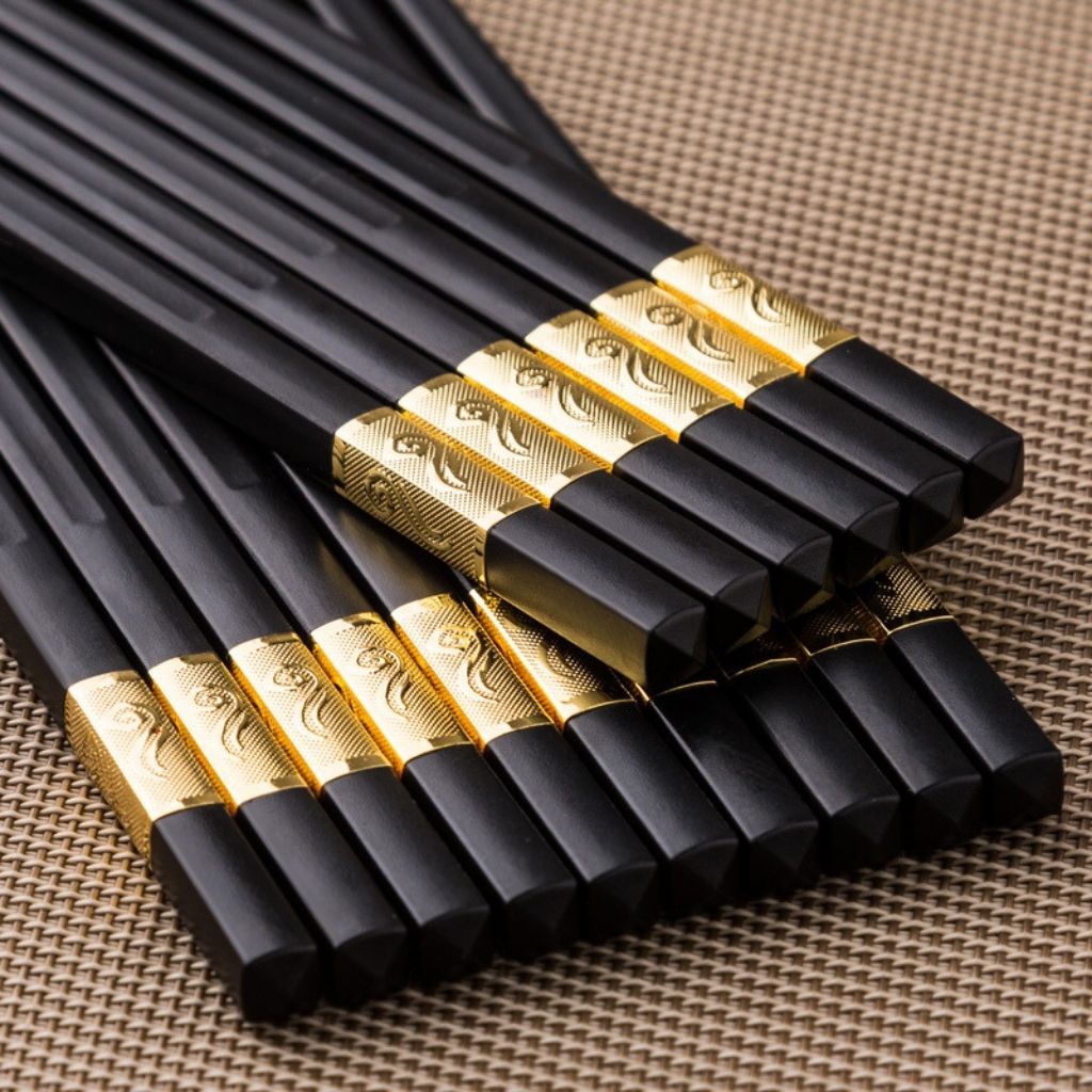 Bộ 10 đôi đũa mạ vàng đũa ăn cao cấp khảm vàng hàn quốc