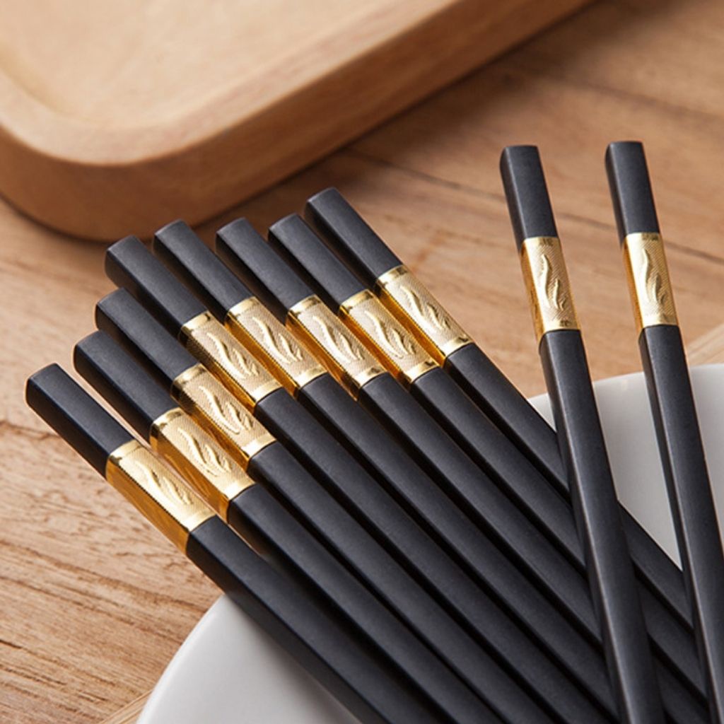 Nhà cửa & Đời sống > Bộ đồ bàn ăn > Tô || Bộ 10 đôi đũa mạ vàng đũa ăn cao cấp khảm vàng hàn quốcCòn hàng