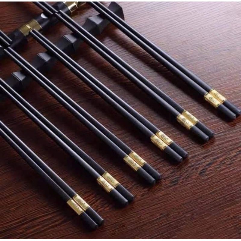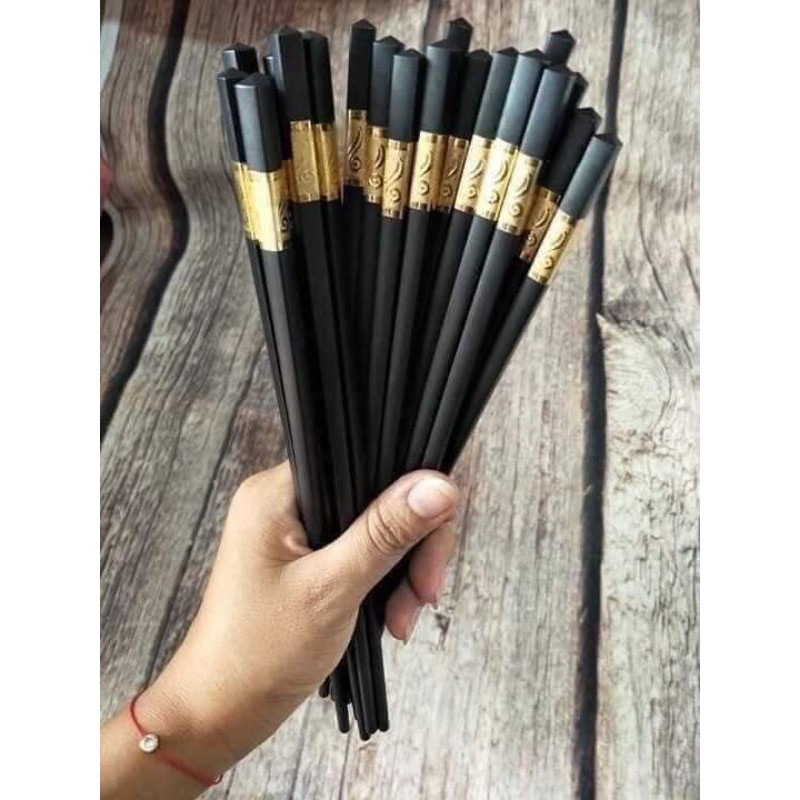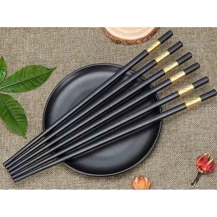 Bộ 10 đôi Đũa mạ vàng, Đũa ăn cao cấp đũa khảm vàng hàn quốc Chống Trơn- Chống Trượt- Chống Mốc- Bền Mầu