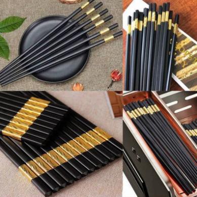 Bộ 10 Đôi Đũa Mạ Vàng, Đũa Hợp Kim Chống Mốc Hàn Quốc Đẹp Mắt Sang Trọng Chống Ẩm MốcSợi thủy tinh, thân thiện Với môi trường