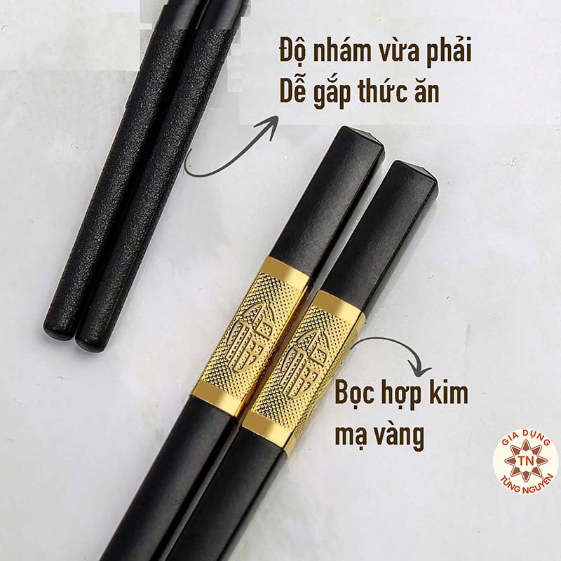 - Đôi đũa được thiết kế bọc viền hoa văn hợp kim mạ vàng cực kỳ tinh tế và sang trọng