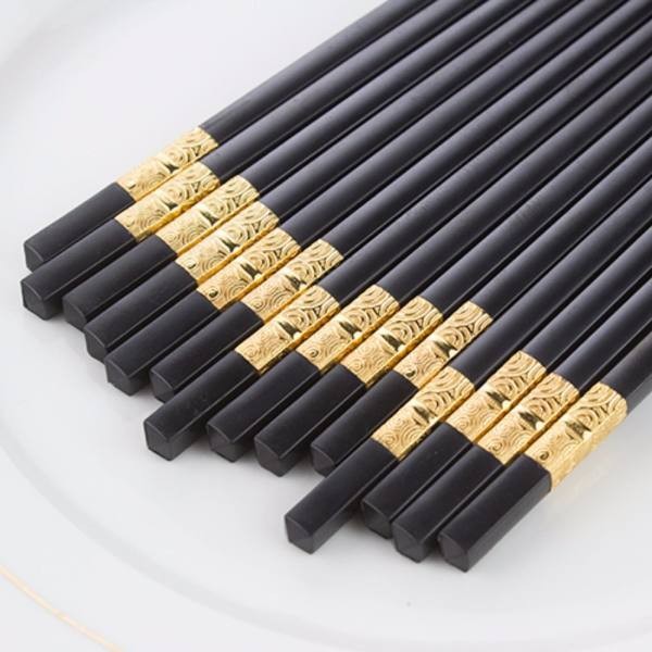 Nhà cửa & Đời sống > Bộ đồ bàn ăn > Bộ dao kéo || Bộ 10 đôi đũa nhật hàn quốc hợp kim mạ khảm vàng phụ kiện bàn ăn có hộp đựngCòn hàng