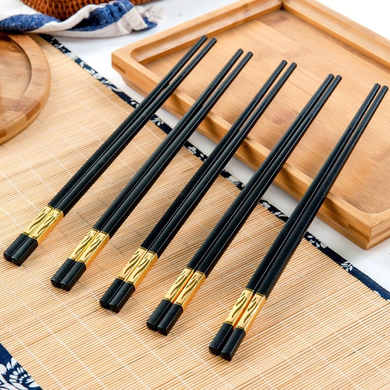 Bộ 10 đôi đũa nhựa nhật bản hàn quốc dùng ăn cơm cao cấp khảm vàng chịu nhiệt chống trơn B03 D07