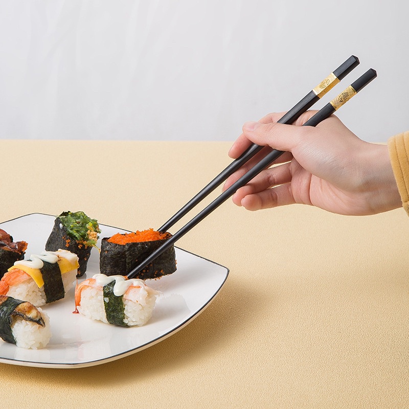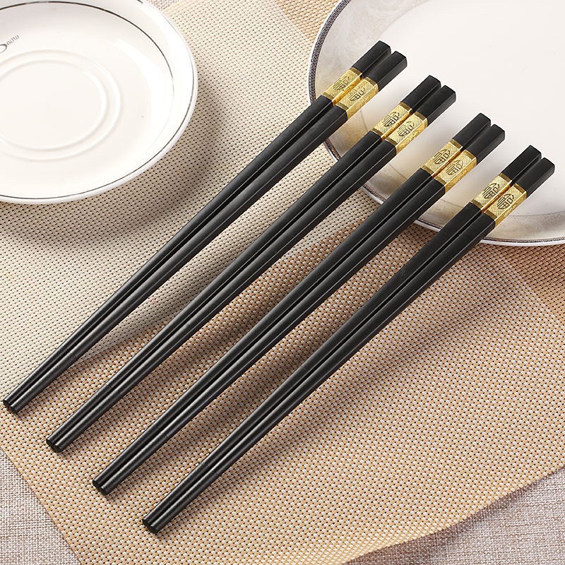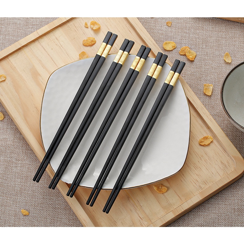 Bộ 10 đôi đũa nhựa phong các Nhật Bản dùng ăn cơm cao cấp khảm vàng chịu nhiệt chống trơn tốt hơn đũa gỗ phụ kiện bàn ăn