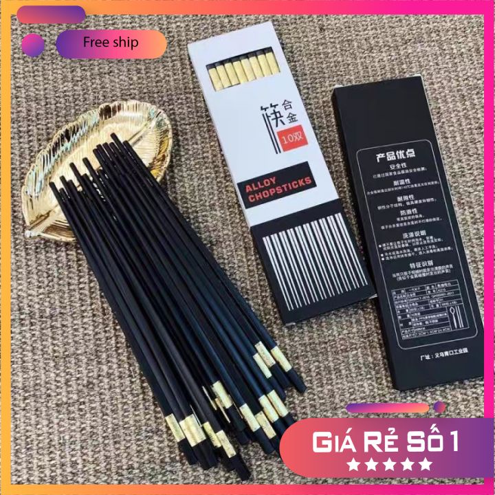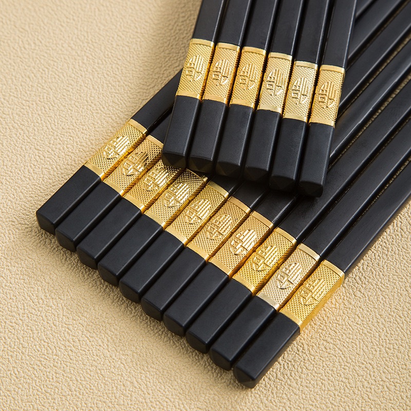 Giới thiệu Bộ 10 đôi đũa nhựa phong các Nhật Bản dùng ăn cơm cao cấp khảm vàng chịu nhiệt chống trơn tốt hơn đũa gỗ phụ kiện bàn ăn