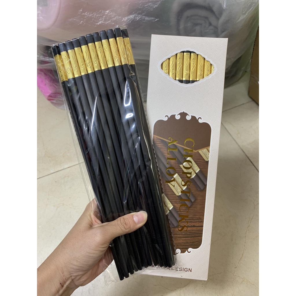 Bộ 10 đôi đũa sừng khảm xịn xuất Nhật (khảm ngắn)Dùng đũa trong bữa cơm từ lâu đã là một nét văn hoá trong ẩm thực của người Việt. Tuy nhiên làm sao để chọn được cho gia đình một đôi đũa vừa đẹp, lại thuận tiện cho việc gắp thức ăn lại không đơn giản. Hãy tham khảo mẫu đũa ăn hợp kim đầu bọc vàng cao cấp này nhé !