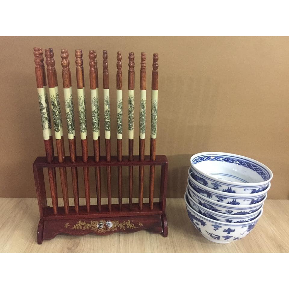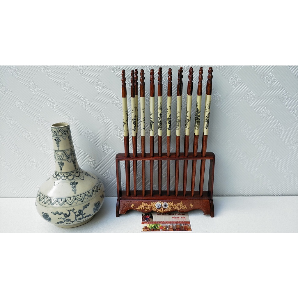 Bộ đũa thờ 10 đôi làm từ gỗ tự nhiên cao cấp khảm hoa văn.