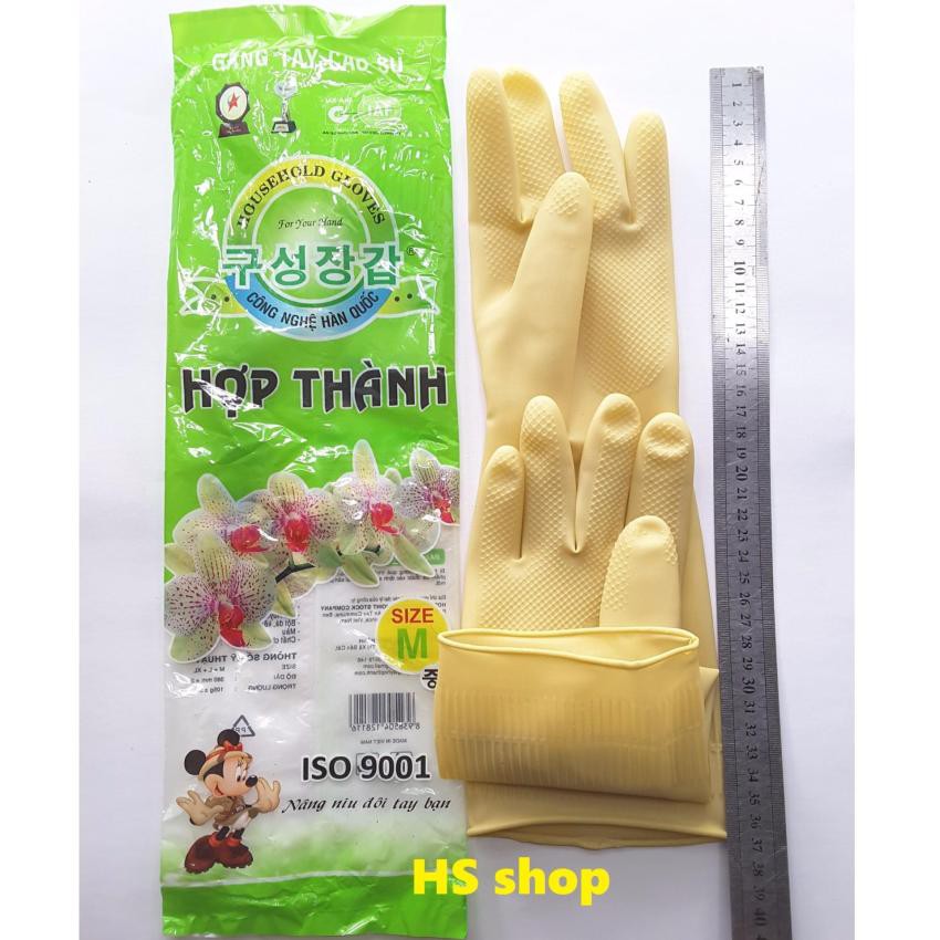 Quy cách: 1 túi to gồm 10 túi nhỏ, mỗi túi nhỏ 1 đôi , dài 38cm +-1, Size cỡ L,M thông dụng phù hợp với Nam và Nữ (Tay lớn).Găng tay cao su tự nhiên Latex nhãn hiệu Hợp Thành là sản phẩm quen thuộc đối với những người nội trợ, làm bếp, chế biến thực phẩm sống, người thường xuyên phải tiếp xúc với hóa chất, chất tẩy rửa khi nhuộm tóc, lau chùi máy móc, làm vệ sinh, làm vườn…