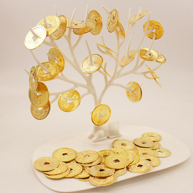 Giới thiệu 10 đồng xu kim loại trang trí,che gốc nhánh cây kim tiền
