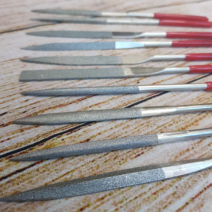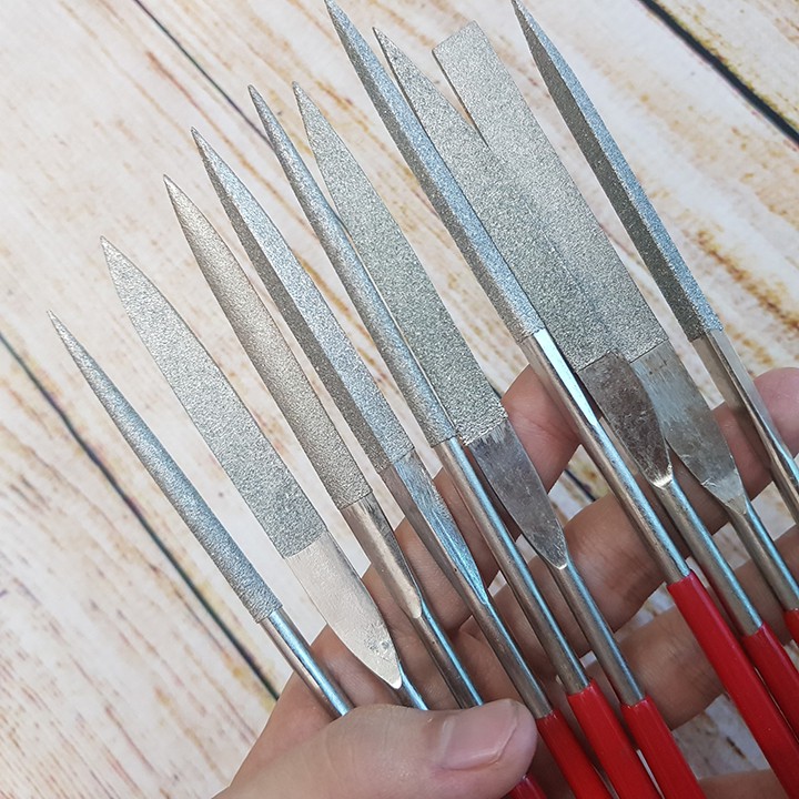 Sản phẩm bộ dũa hợp kim 10 món gồm các đầu dũa dẹp, dũa bán nguyệt, dũa tròn, dũa tam giác, dũa vuông, dũa hình lưỡi dao…. hỗ trợ mọi sự sáng tạo bạn mong muốn.