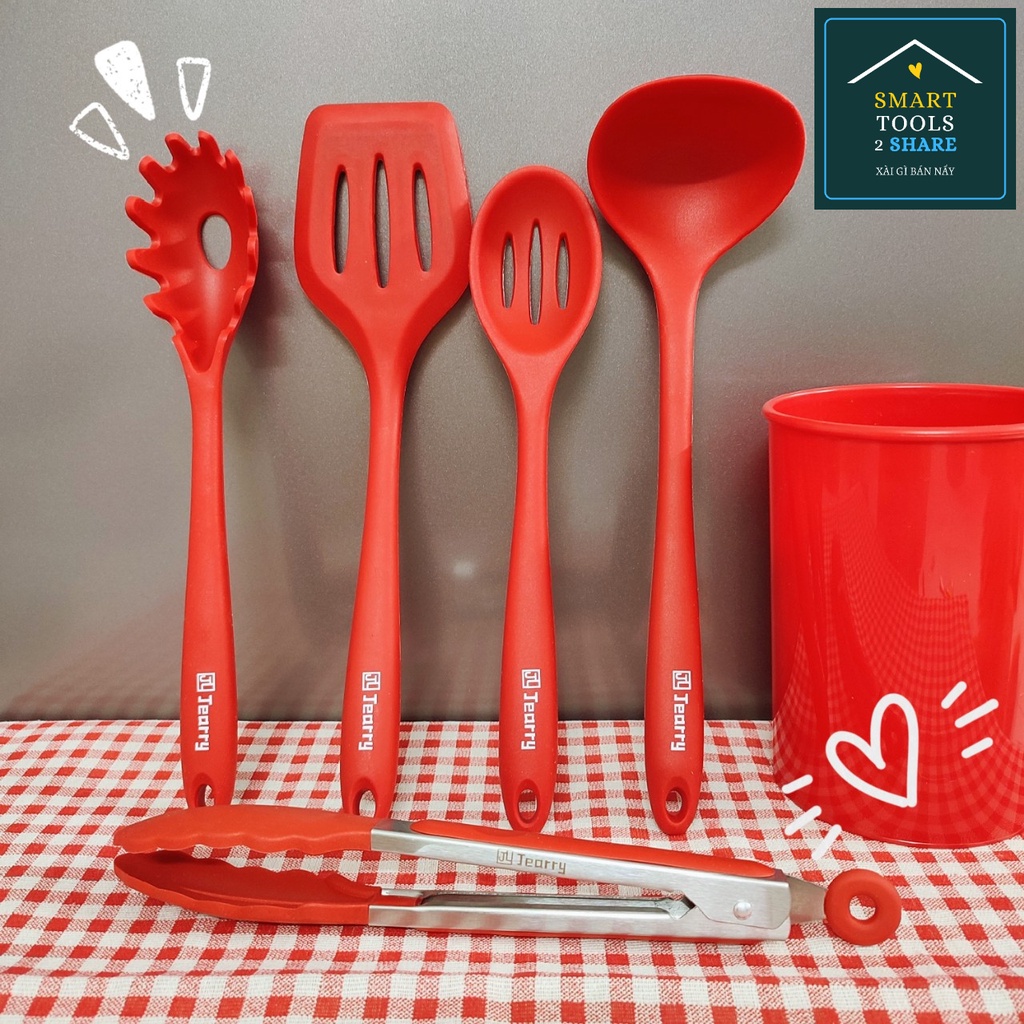Quy cách: sản phẩm bao gồm 10 dụng cụ nấu ăn và 1 thùng đựng bằng nhựa.