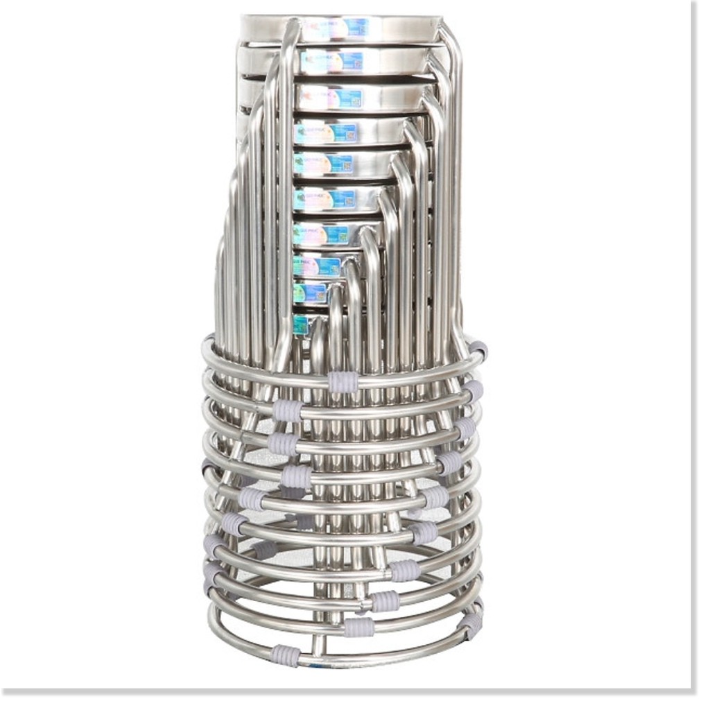 Bộ sản phẩm gồm 10 đôn Inox chất lượng cao, không gỉGhế rất dày và chắc chắn