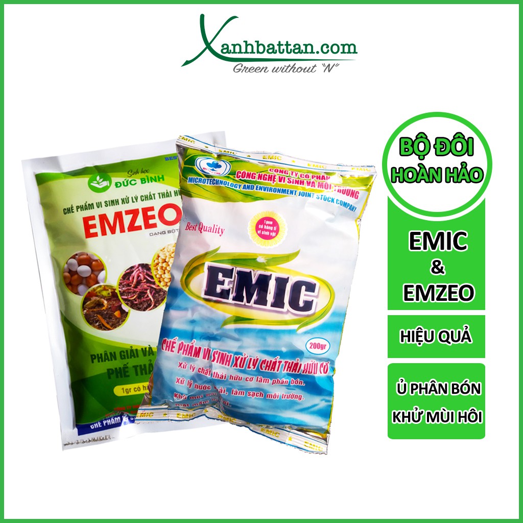 Bộ sản phẩm emzeo và emic là dạng men vi sinh dùng để ủ phân bón như ủ phân đậu tương, ủ phân cá, ủ rác thải gia đình..v.v.. bộ sản phẩm hết hợp lại với nhau sẽ làm giảm thời gian ủ nhanh nhất, hiệu quả cao hơn. Đặc biệt Emzeo làm giảm thiểu mùi hôi trong quá trình ủ phân đến 99%.