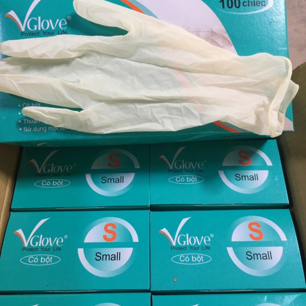 10 hộp ( 1 thùng ) Găng Tay Cao Su Y Tế VGLOVE có bột hộp 100 cái ( 50 đôi )(y) Size: S, M, L