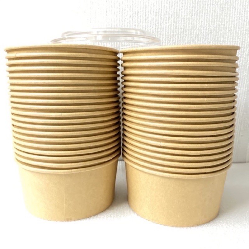 Sản phẩm gồm 10 hộp tô giấy kraft nắp đục đựng thức ăn nguộiHộp làm bằng giấy Kraft bảo vệ môi trường