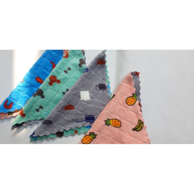 Nhà cửa & Đời sống > Đồ dùng phòng tắm > Khăn mặt, khăn tắm, áo choàng tắm > Khăn mặt || Bộ 10 khăn lau bát đĩa, lau bếp hình hoa quả 2 mặt lông mềm mịn KT: 20x20cm(ảnh thật)Còn hàng