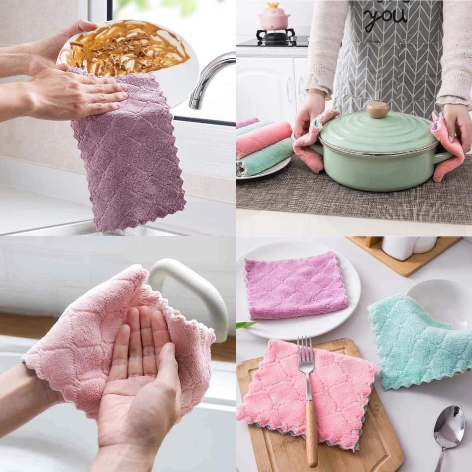 Nhà cửa & Đời sống > Dụng cụ chăm sóc nhà cửa > Khăn vệ sinh || Bộ 10 khăn lau đa năng bếp, bát đĩa, cốc chén thấm nước chống dính dầu mỡ hai mặt loại to 14x25cmCòn hàng