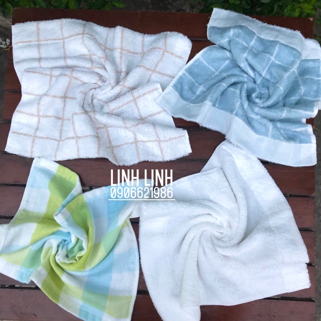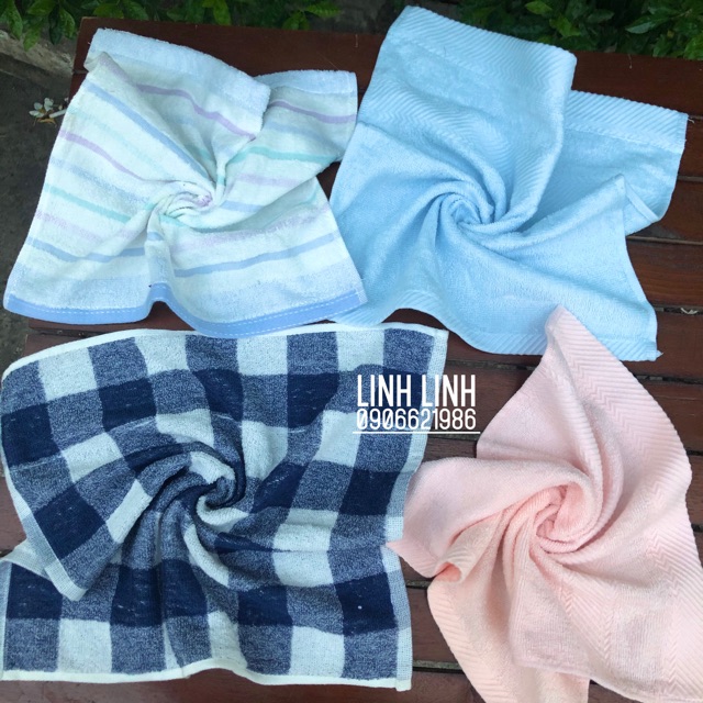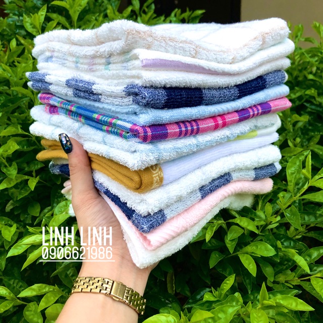 Khăn tay nhỏ xinh, nhẹ nhàng. Dùng làm khăn lau mặt, khăn ăn, bỏ túi lau mồ hôi cũng rất tiện. Tất cả đều là hàng xuất Nhật với lỗi nhỏ tí tị tì ti không đáng kể. Em tổng hợp nhiều brand nên kích thước và trọng lượng sẽ same same nhau thôi nhé. Bác nào hay xài hàng Nhật thì thấy mấy khăn này quen quá đi rồi. Vào store Muji hay Miniso là thấy liền. Mỗi tội ko có giá mấy nghìn như em Linh bán đâu ^^Khăn 34x34cm (+-2cm)