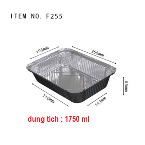 10 Khay giấy bạc chữ nhật dung tích 1750ml kèm nắp bạc