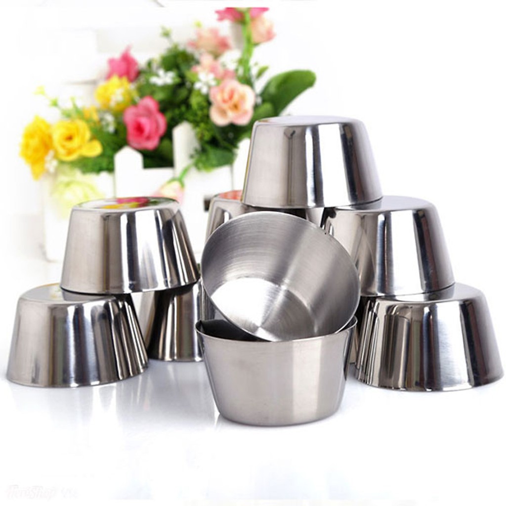 Giới thiệu Bộ 10 Khuôn Làm Bánh Inox 304 Có Nắp ( 7cm ) Làm Bánh Flan , Rau Câu , Cupcake, Làm Đá Không Gỉ