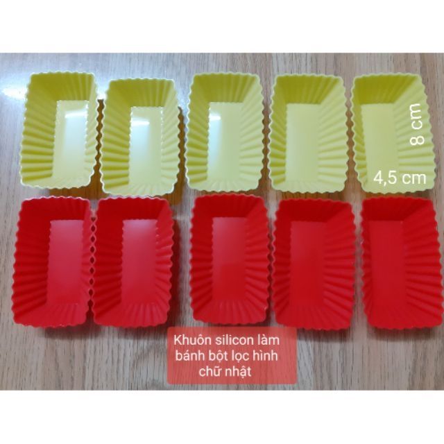 Bộ 10 Khuôn silicon hình chữ nhật vâncạnh làm bánh bột lọc, thạch rau câu, cupcake về ít theo yêu cầu của khách ạ45k/ 10 khuôn