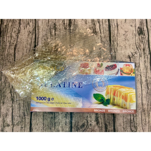 Gelatin lá có trọng lượng tầm 3,6g/láThích hợp làm bánh lạnh, mousse, rau câu...