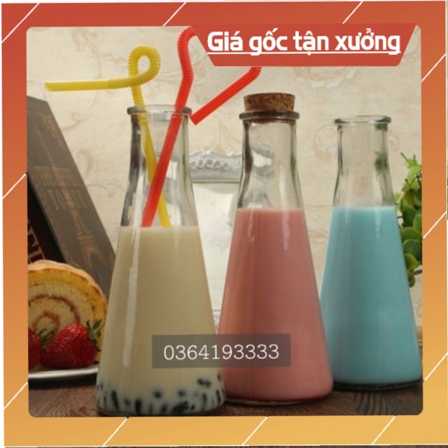 Nhà cửa & Đời sống > Bộ đồ bàn ăn > Bình nước & phụ kiện || 10 lọ thủy tinh tam giác kèm nút gỗ 350mlCòn hàng
