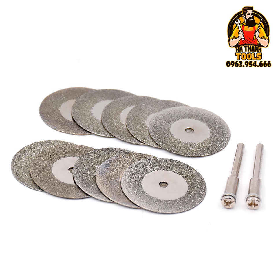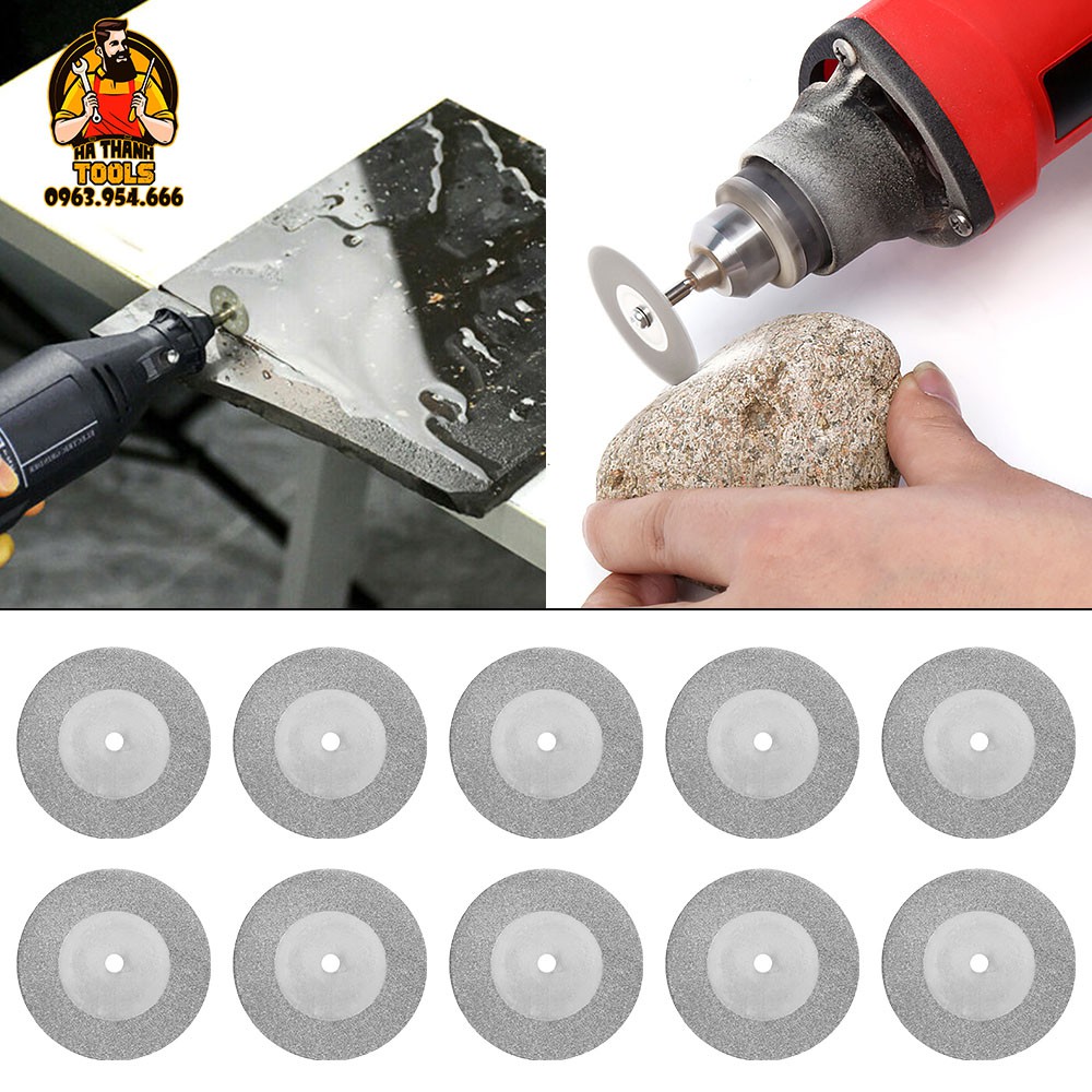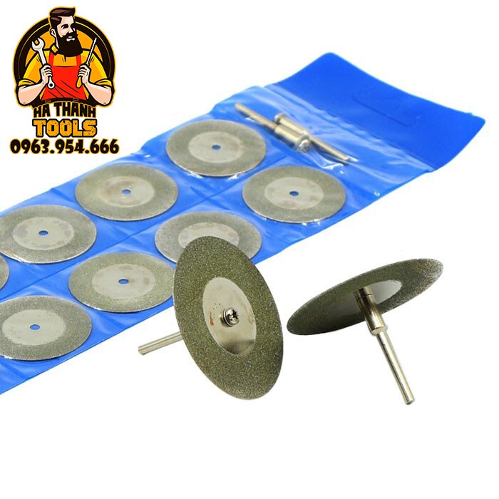 Bộ 10 lưỡi cắt mài đa năng mini bạn có thể dễ dàng sử dụng nó cho Thủy tinh, đá, ngọc, gỗ… Có thể cắt khô hoặc cắt nước. Tuổi thọ của lưỡi cắt kim cương sẽ bền hơn khi cắt nước.