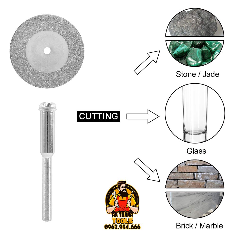 Lưỡi cắt được phủ kim cương cao cấp nên có thể cắt được ngọc, đá, thủy tinh, nhựa, gỗ…