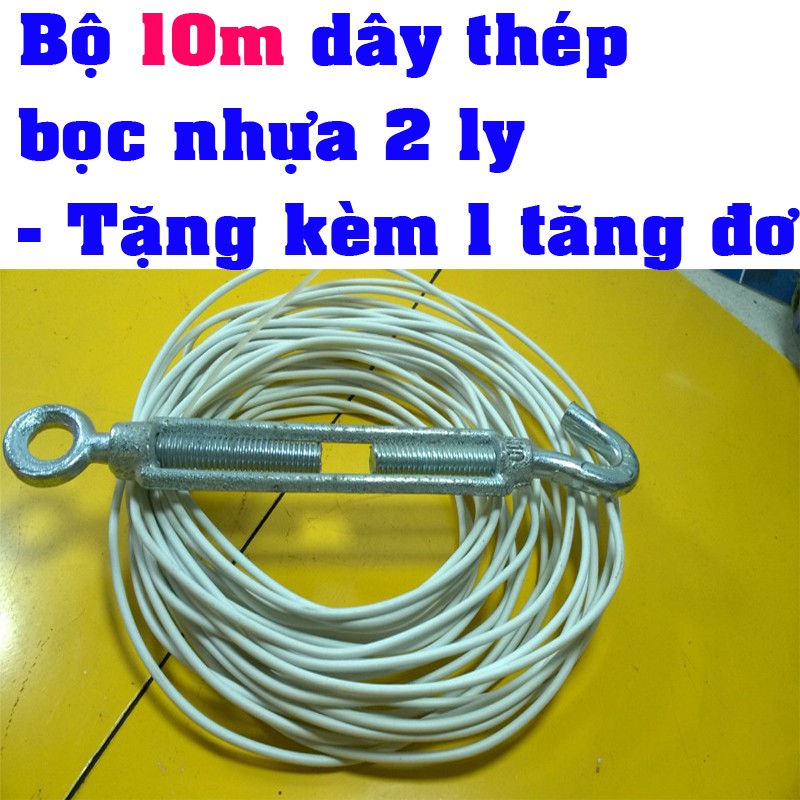 10 mét Dây Phơi Quần Áo Không Han. Dây Thép Bọc Nhựa 2 ly màu trắng tặng kèm 1 tăng đơ