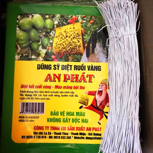 Giới thiệu Bộ 10 Miếng dán diệt ruồi vàng hại hoa Lan, rau màu, cây ăn trái An Phát ( Kèm dây buộc)