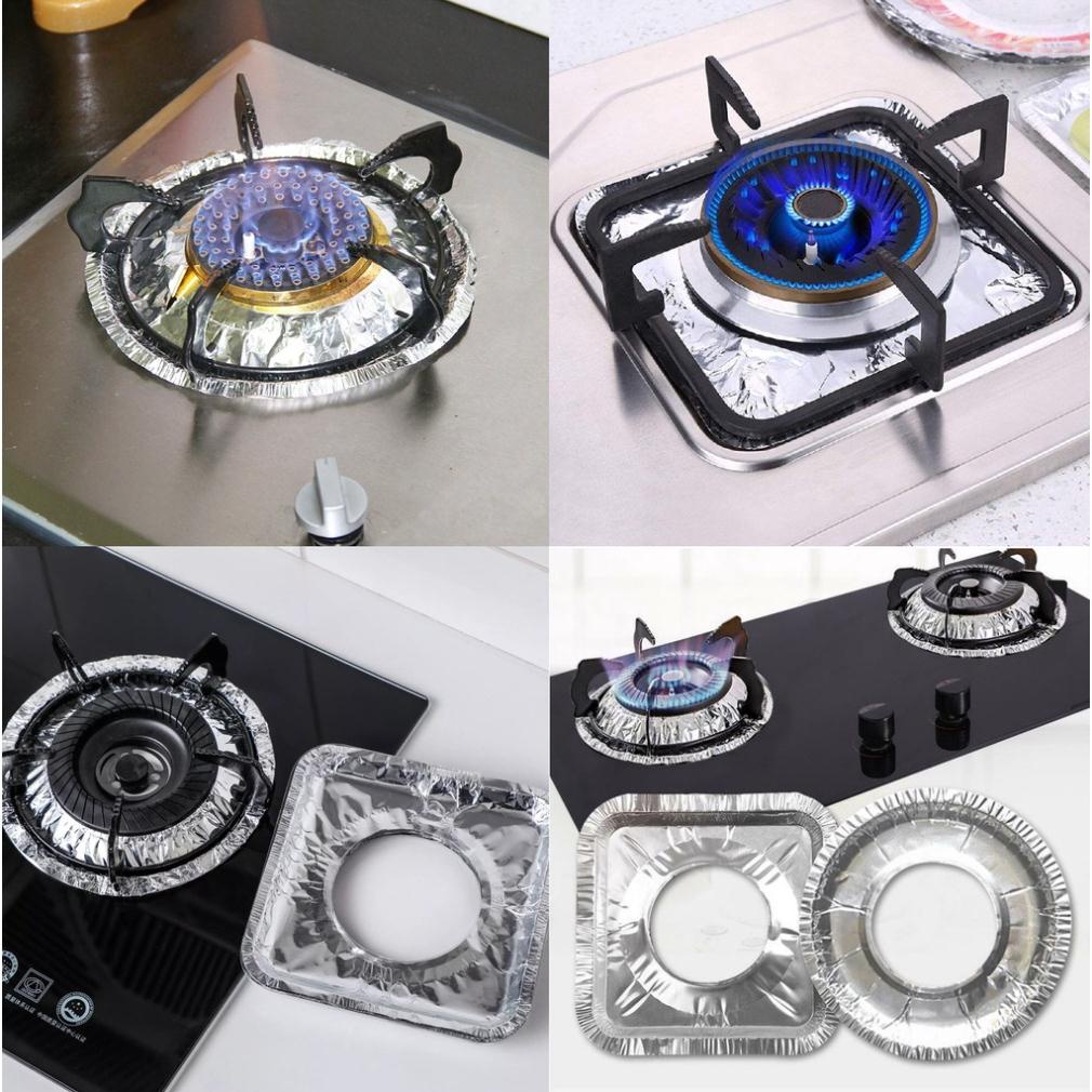 - Giấy bạc lót bếp ga được thiết kế với 2 kiểu hình dạng vuông và tròn, vừa vặn với tất cả các loại bếp.