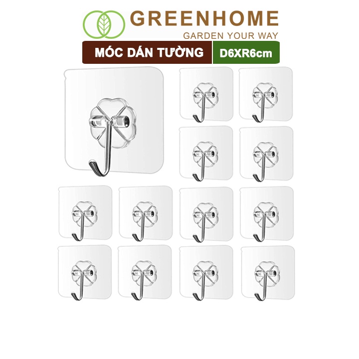 Bộ 10 Móc dán tường, treo tường D6xR6cm chịu lực tốt, treo vật trang trí phòng khách, đồ dùng nhà bếp |Greenhome