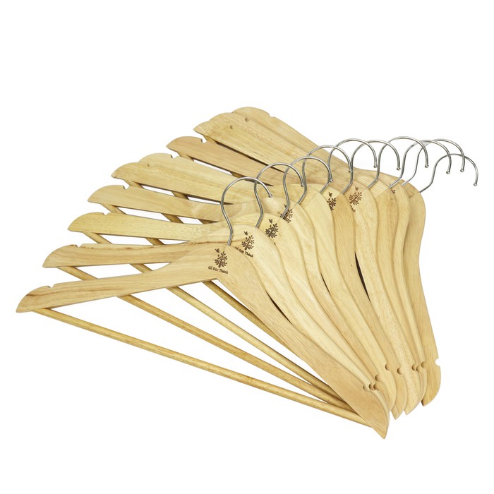 - Được làm từ Gỗ cao su có màu trắng sáng, chất liệu nhẹ với nhiều kích cỡ to nhỏ, dày mỏng khác nhau, phù hợp để treo nhiều loại áo vest, áo kiểu, sơ mi, quần tây, quần jean...