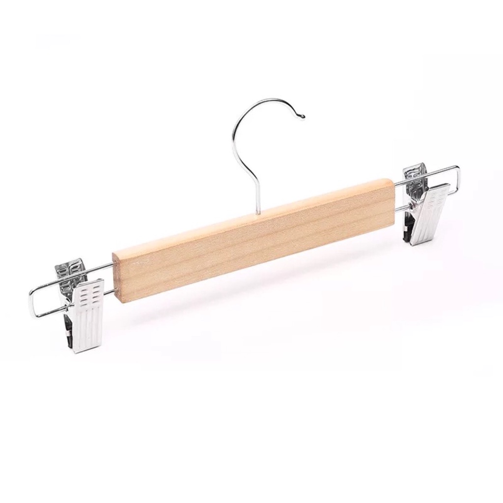 - Móc kẹp váy quần cho thời trang trẻ em- Chất liệu: Gỗ vàng tự nhiên, đầu kẹp và đầu móc inox xi chống gỉ