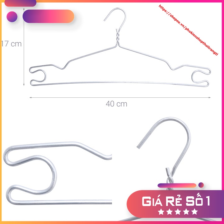 Mỗi chiếc mắc đều được chế tác cẩn thận, làm nhẵn bóng bề mặt, không để lại kim loại thừa, không gây sờn rách trang phục.Phù hợp sử dụng trong tủ đựng áo quần hay ngoài trời, sân vườn đều được
