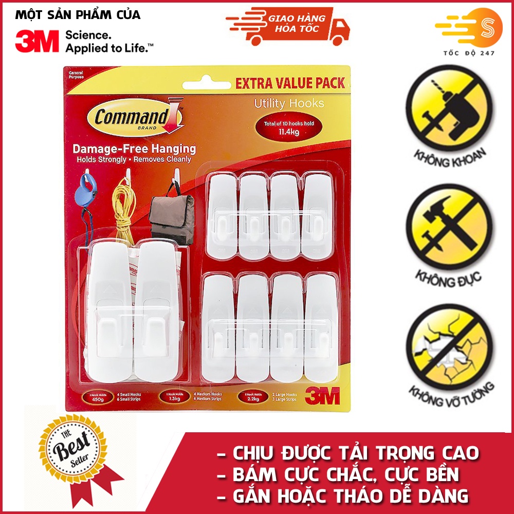 Nhà cửa & Đời sống > Sắp xếp nhà cửa > Móc treo || Bộ 10 móc treo đồ dán tường cường lực siêu dính 11.4kg Command 3M 17008EXVPCòn hàng
