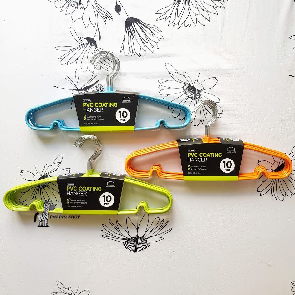Nhà cửa & Đời sống > Sắp xếp nhà cửa > Mắc áo || Bộ 10 móc treo quần áo Lock&Lock khung kim loại cứng bọc nhựa ETM391Còn hàng