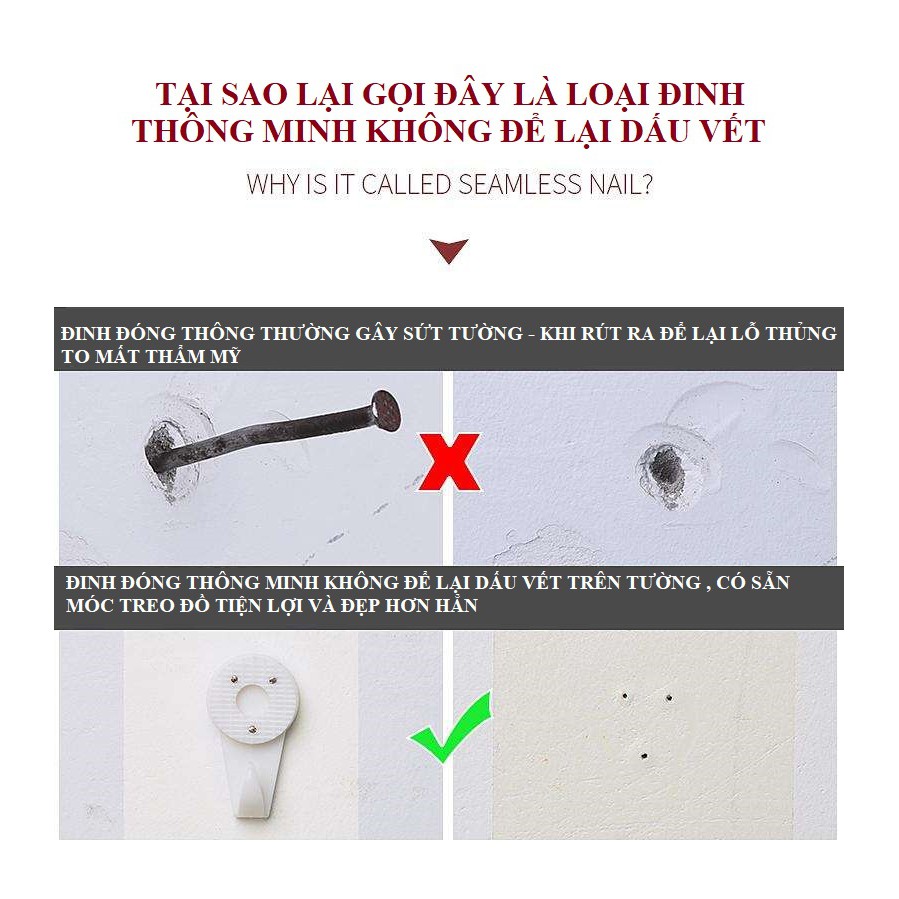 - Các loại đinh thông thường đóng vào tường sẽ tạo ra các vết thủng rất to cho tường nhà bạn. Nhưng giờ đã có MÓC TREO TƯỜNG THÔNG MINH sẽ thay các lỗ thủng to ấy bằng các lỗ li ti không đáng kể, lại còn rất dễ sử dụng mà không cần đến khoan.