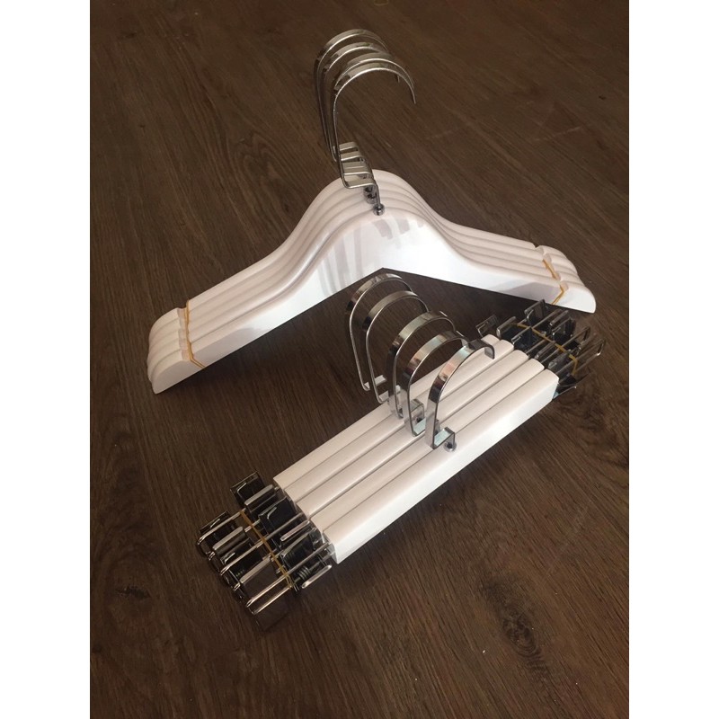 bộ 10 móc và 10 kẹp gỗ trắng cao cấp móc áo treo đồ Nam Nữ,treo váy,đầm,áo dài,áo thun,polo.