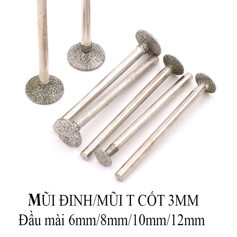 Nhà cửa & Đời sống > Dụng cụ & Thiết bị tiện ích > Dụng cụ > Cưa, máy cắt & máy mài || Bộ 10 mũi cắt hình chữ T/Mũi Đinh (Mã H) chân cán 3mm chuyên dụng mài, cắt đá thô, đá cảnh, chạm tượngCòn hàng
