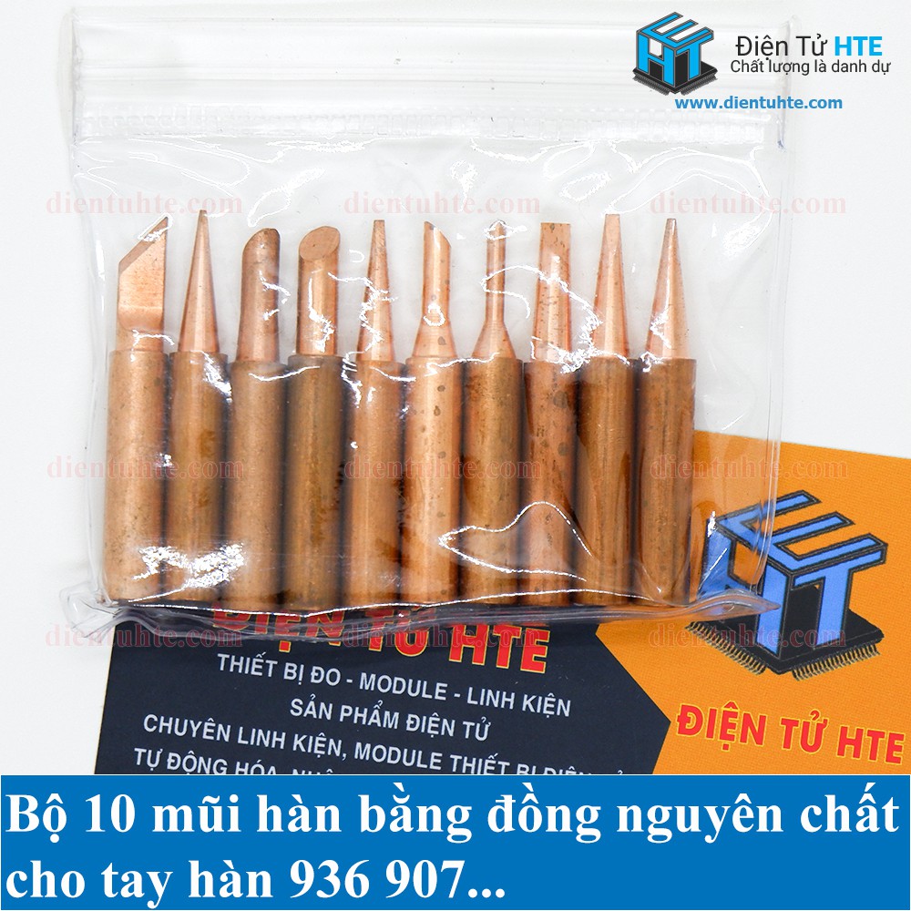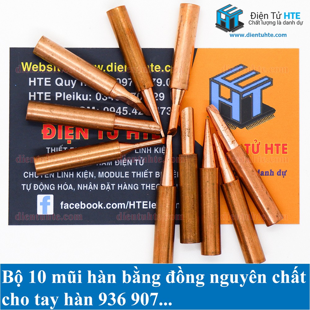 ĐIỆN TỬ HTE - KHO QUY NHƠN - CHI NHÁNH 2_x000D_Bộ 10 mũi hàn nhiều loại bằng đồng nguyên chất cho tay hàn 936 907