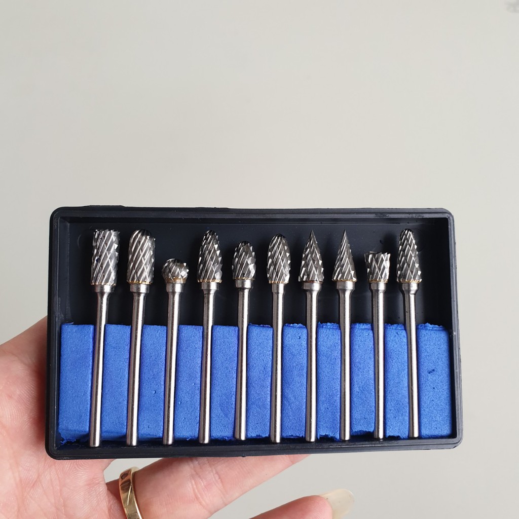 10 mũi mài khắc gỗ nhựa đồng nhôm hợp kim cao cấp vofram rất nét hộp mầu xanh