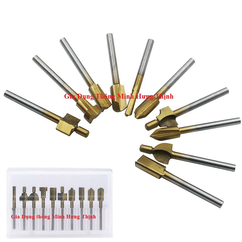 Bộ 10 Mũi Phay Gỗ Cán 3mm - Dụng Cụ Làm Lũa Dremel