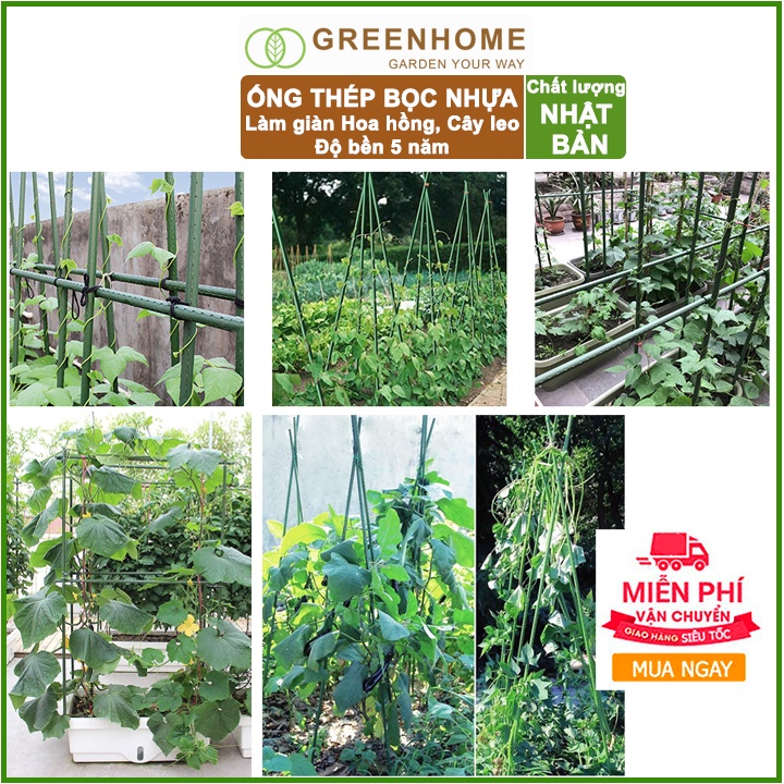 Nhà cửa & Đời sống > Làm vườn > Dụng cụ làm vườn || Bộ 10 Ống thép bọc nhựa dài 90cm, phi 16mm, Nhật Bản, Daim, làm khung, giàn cây leo, độ bền 5 năm |GreenhomeCòn hàng
